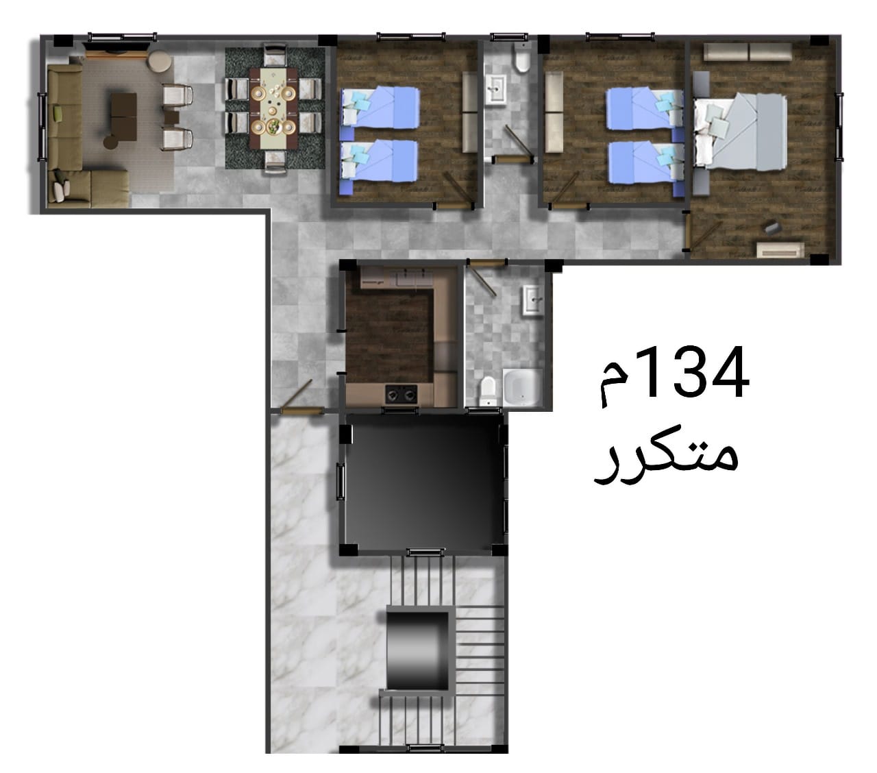 شقه دور متكرر 134م بيت الوطن الحى الاول